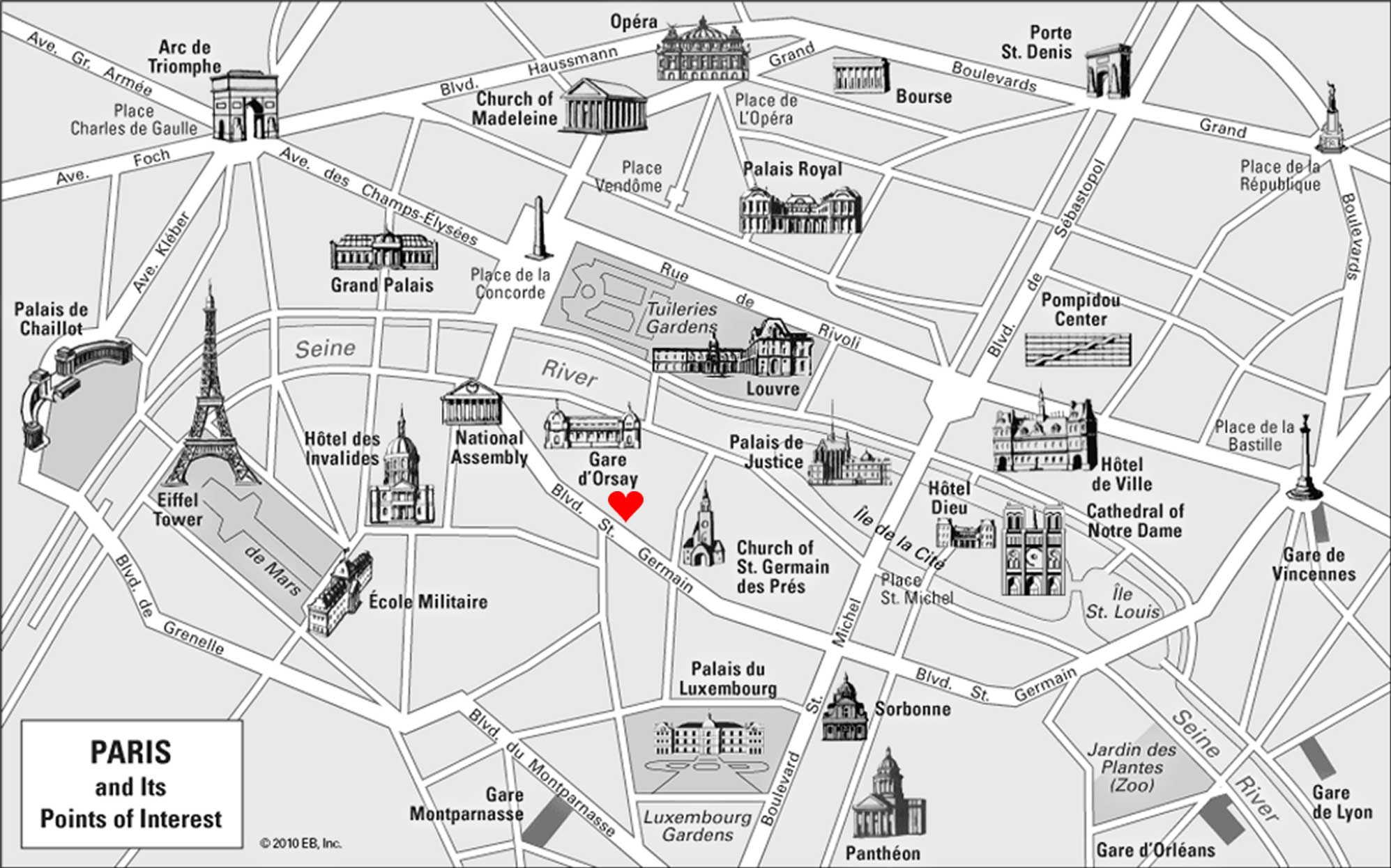 • Left Bank - Walking distance to Orsay and Le Louvre Museums, art galleries, and famous department store “Le Bon Marché”